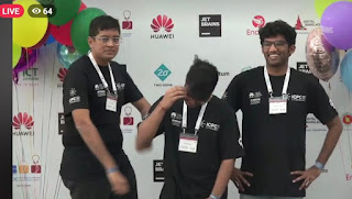 After quickly fixing these issues, we went through the other registration desks, where one of the ladies said “hey, you’re that guy who participated alone last year!”. I guess I was memorable; I have to say, the memories were definitely meme-worthy! She was glad I had a team this year, and hopefully she’ll remember me next year as well. We did the team picture, and were confused about what to do for the team video; we ended up doing three different things, with me doing a thinker like last year, Shivam doing the “cool guy hairflip”, and Bhaskar being generally confused about the camera being turned on.