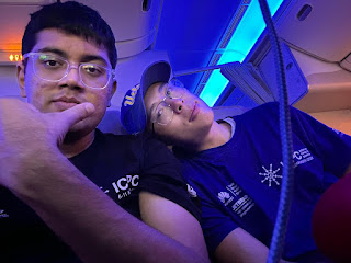 Finally, it was time to leave for Dhaka! I travelled with Lucas (who had qualified from UCLA, his undergraduate institution) and we had flights through Dubai. Since our seats were far away, we tried to use the in-flight calling feature on Emirates; but sadly, it didn’t work very well 😖. At Dubai, we met the UCLA coach Professor David Smallberg, who got us into a nice lounge at the airport. We got some rest and free food; what more could we ask for? 😋