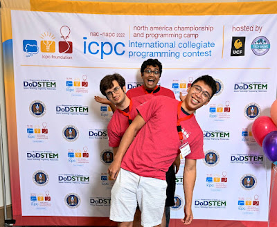 A fellow incoming Stanford student Lucas Xia reached out to me on discord, asking me if I would want to form a team with him to contend from Stanford for another World Finals. I decided that I was in, and we completed our team with Konstantin Miagkov, a PhD student in Math. We ended up doing pretty well in the North American circuit, qualifying to NAC in May 2022, and coming 11th there. This result allowed us to qualify for the World Finals to be held in Sharm El-Sheikh, Egypt 2023. Maxwell wrote a cool blog on the NAC experience here and Alex made a nice video on NAC here.